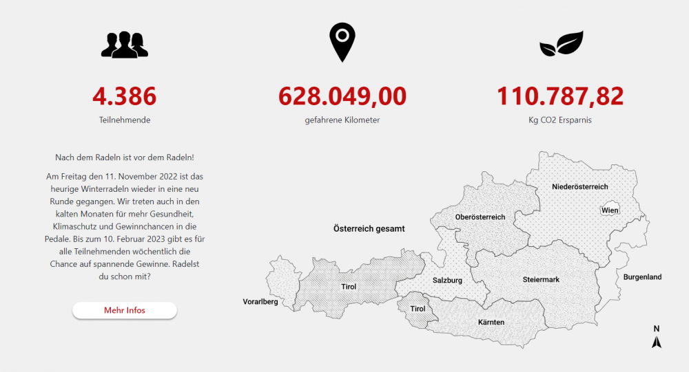 Wir bedanken uns bei allen fleißigen Radler:innen und freuen uns, dass ihr auch bei kalten Temperaturen ein Zeichen für nachhaltige Mobilität setzt. Damit Bestärken wir den notwendigen Wandel in unserer Gesellschaft im Hinblick auf klimaneutrale Fortbewegung, Gesundheitsförderung und Umweltschutz.