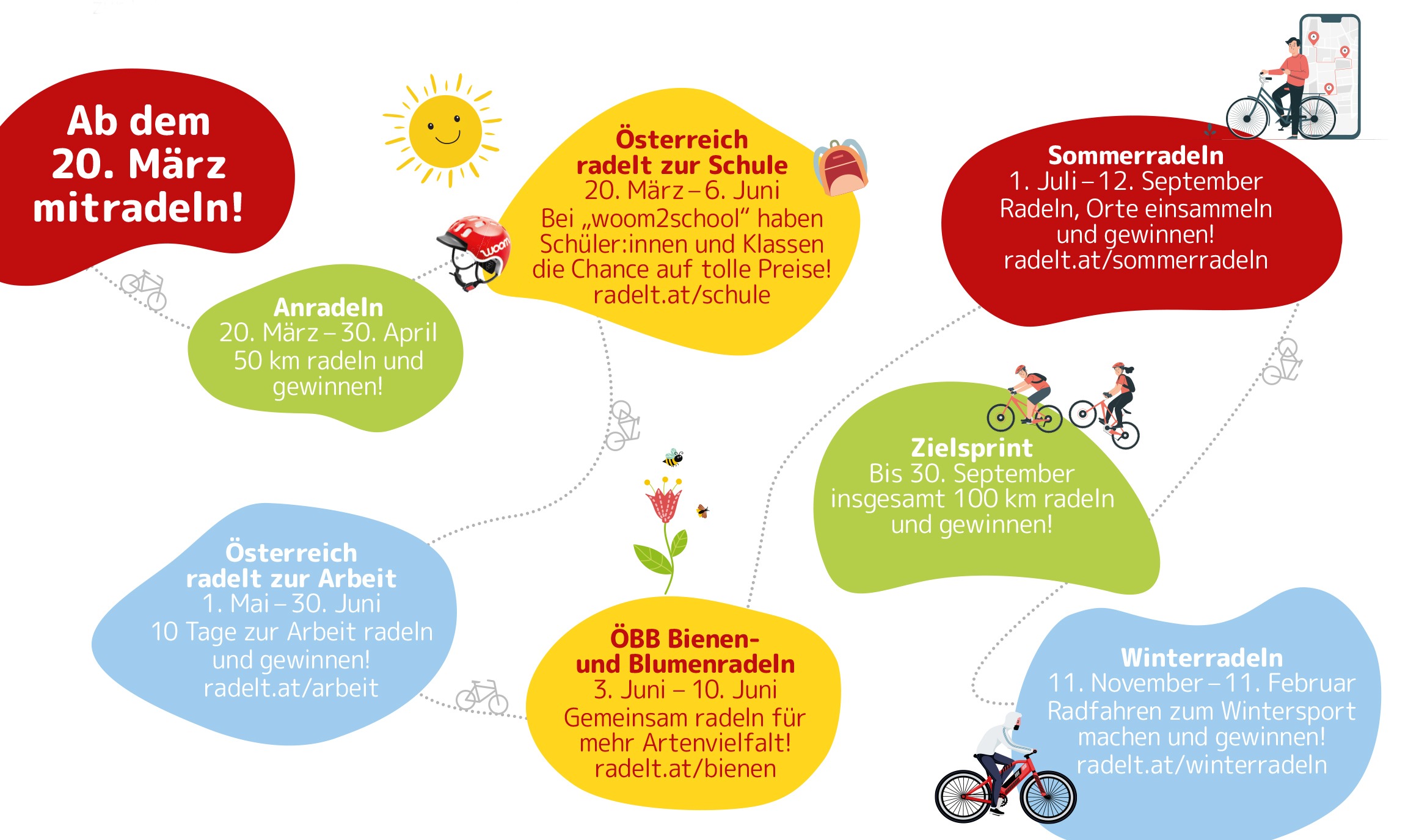 - Österreich radelt (20.03.–30.09.2026): Radle 100 Kilometer!
